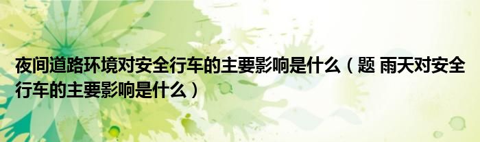 关于夜间道路环境对安全行车的主要影响是什么,题 雨天对安全行车的主要影响是什么这个很多人还不知道,今天菲菲来为大家解答以上的问题,现在让我们一起来看看吧!