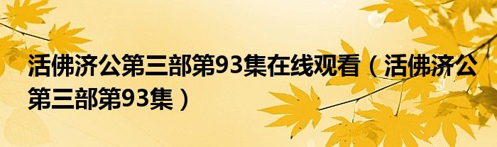 关于活佛济公第三部第93集在线观看,活佛济公第三部第93集这个很多人还不知道,今天菲菲来为大家解答以上的问题,现在让我们一起来看看吧!