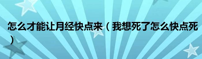 关于怎么才能让月经快点来,我想死了怎么快点死这个很多人还不知道,今天菲菲来为大家解答以上的问题,现在让我们一起来看看吧!