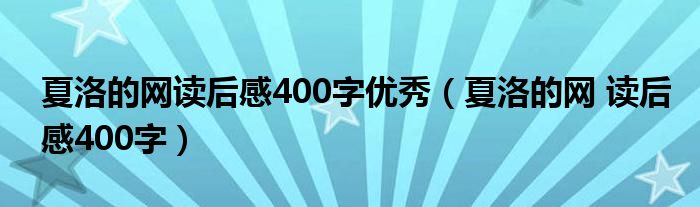 关于夏洛的网读后感400字优秀,夏洛的网 读后感400字这个很多人还不知道,今天菲菲来为大家解答以上的问题,现在让我们一起来看看吧!