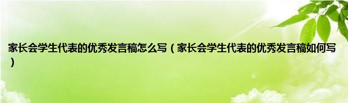 家长会学生代表的优秀发言稿怎么写(家长会学生代表的优秀发言稿如何写)