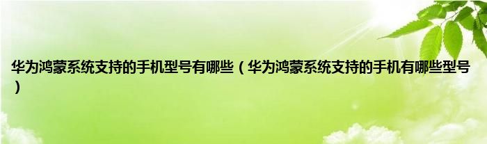 欢迎观看本篇文章,小升来为大家解答以上问题。华为鸿蒙系统支持的手机型号有哪些,华为鸿蒙系统支持的手机有哪些型号很多人还不知道,现在让我们一起来看看吧!