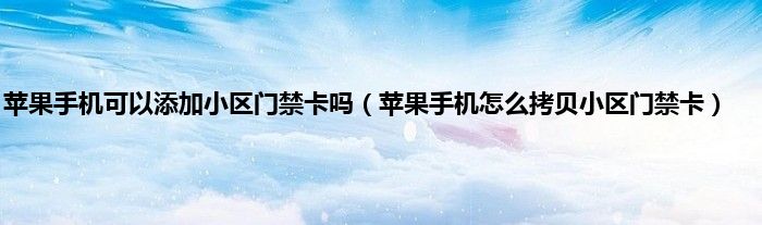 苹果手机可以添加小区门禁卡吗(苹果手机怎么拷贝小区门禁卡)
