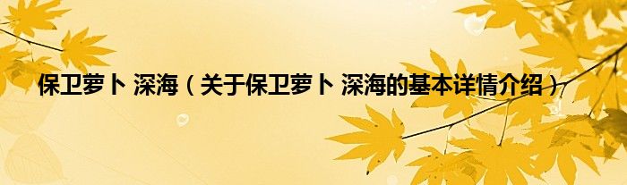 保卫萝卜深海(关于保卫萝卜深海的基本详情介绍)