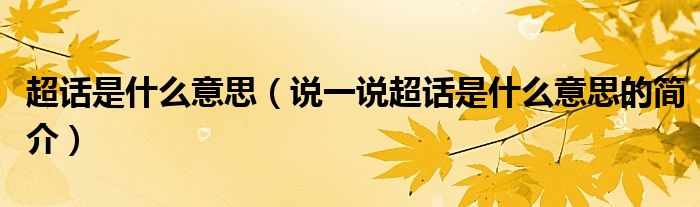 超话是什么意思(说一说超话是什么意思的简介)