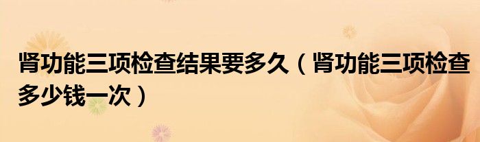 大家好,乐天来为大家解答以下的问题,肾功能三项检查结果要多久,肾功能三项检查多少钱一次很多人还不知道,现在让我们一起来看看吧!