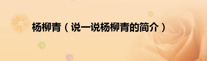 杨柳青(说一说杨柳青的简介)