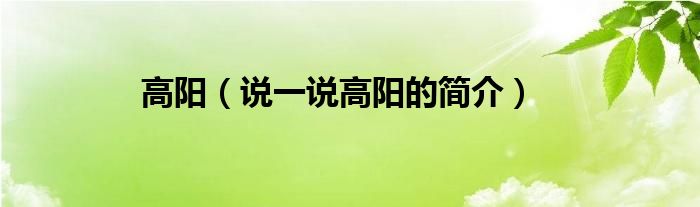 夏弥来为大家解答以下的问题,高阳,说一说高阳的简介,现在让我们一起来看看吧!