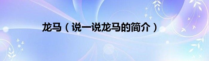 夏弥来为大家解答以下的问题,龙马,说一说龙马的简介,现在让我们一起来看看吧!