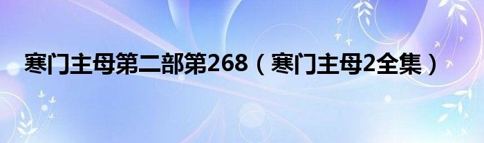寒门主母第二部第268(寒门主母2全集)
