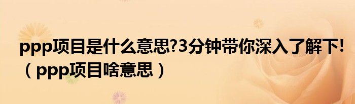 ppp项目是什么意思?3分钟带你深入了解下!(ppp项目啥意思)