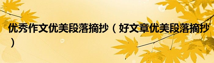 大家好,乐儿来为大家解答以下问题,优秀作文优美段落摘抄,好文章优美段落摘抄很多人还不知道,现在让我们一起来看看吧!