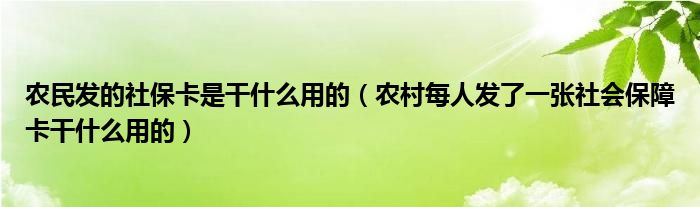 农民发的社保卡是干什么用的(农村每人发了一张社会保障卡干什么用的)