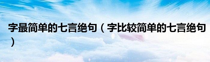 大家好,乐儿来为大家解答以下问题,字最简单的七言绝句,字比较简单的七言绝句很多人还不知道,现在让我们一起来看看吧!
