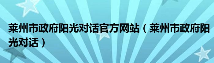 莱州市政府阳光对话官方网站(莱州市政府阳光对话)