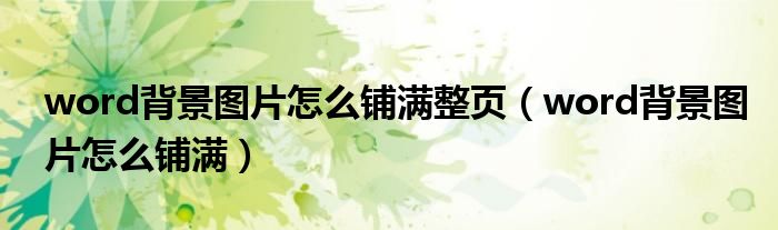 word背景图片怎么铺满整页(word背景图片怎么铺满)