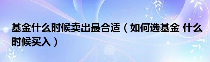 基金什么时候卖出最合适(如何选基金 什么时候买入)