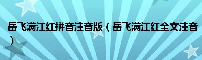 关于岳飞满江红拼音注音版,岳飞满江红全文注音这个很多人还不知道,今天菲菲来为大家解答以上的问题,现在让我们一起来看看吧!
