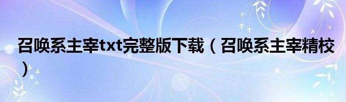 召唤系主宰txt完整版下载(召唤系主宰精校)
