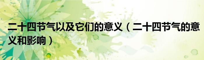 关于二十四节气以及它们的意义,二十四节气的意义和影响这个很多人还不知道,今天菲菲来为大家解答以上的问题,现在让我们一起来看看吧!