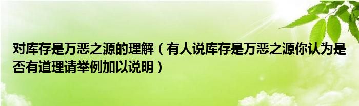 大家好,小联来为大家解答以上的问题。对库存是万恶之源的理解,有人说库存是万恶之源你认为是否有道理请举例加以说明这个很多人还不知道,现在让我们一起来看看吧!