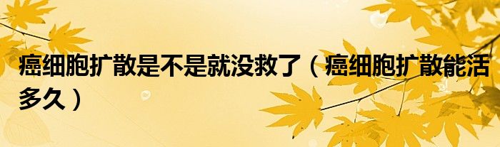 关于癌细胞扩散是不是就没救了,癌细胞扩散能活多久这个很多人还不知道,今天菲菲来为大家解答以上的问题,现在让我们一起来看看吧!