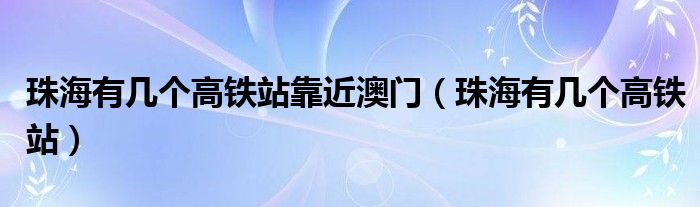 大家好,我是小科,我来为大家解答以上问题。珠海有几个高铁站靠近澳门,珠海有几个高铁站很多人还不知道,现在让我们一起来看看吧!