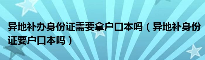 大家好,我是小科,我来为大家解答以上问题。异地补办身份证需要拿户口本吗,异地补身份证要户口本吗很多人还不知道,现在让我们一起来看看吧!