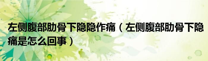 大家好,乐天来为大家解答以下的问题,左侧腹部肋骨下隐隐作痛,左侧腹部肋骨下隐痛是怎么回事很多人还不知道,现在让我们一起来看看吧!
