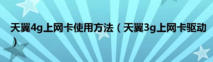 天翼4g上网卡使用方法(天翼3g上网卡驱动)
