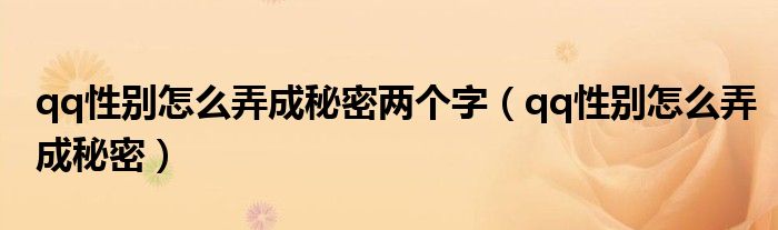大家好,小晋来为大家解答以下问题,关于qq性别怎么弄成秘密两个字,qq性别怎么弄成秘密很多人还不知道,今天让我们一起来看看吧!