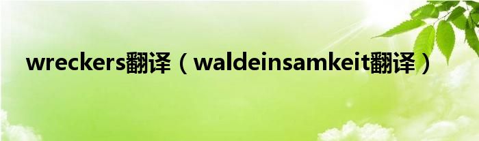 wreckers翻译(waldeinsamkeit翻译)