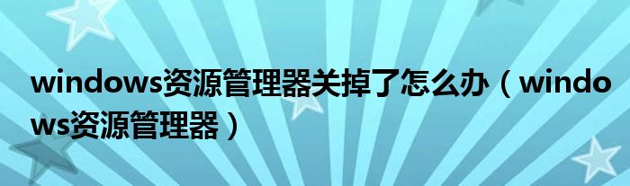 windows资源管理器关掉了怎么办(windows资源管理器)