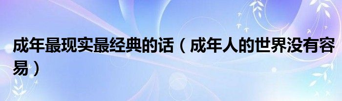 成年最现实最经典的话(成年人的世界没有容易)