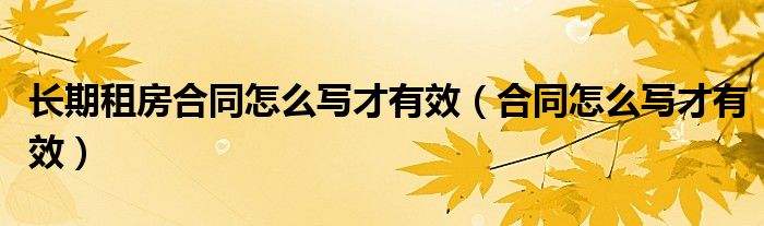 长期租房合同怎么写才有效(合同怎么写才有效)