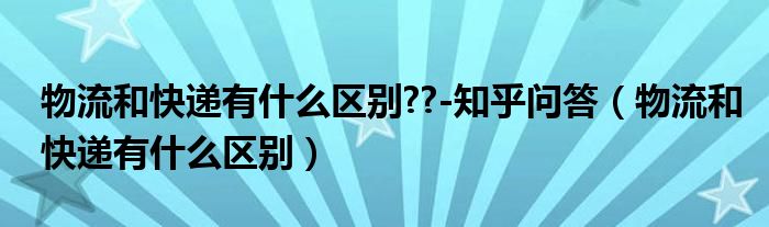 物流和快递有什么区别??-知乎问答(物流和快递有什么区别)