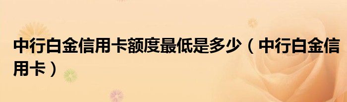 大家好,我是小科,我来为大家解答以上问题。中行白金信用卡额度最低是多少,中行白金信用卡很多人还不知道,现在让我们一起来看看吧!