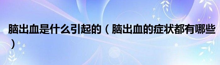 大家好,乐天来为大家解答以下的问题,脑出血是什么引起的,脑出血的症状都有哪些很多人还不知道,现在让我们一起来看看吧!