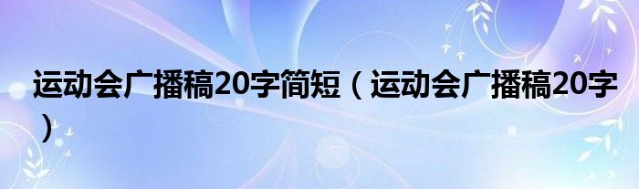最佳答案大家好,我是小科,我来为大家解答以上问题。运动会广播稿20字简短,运动会广播稿20字很多人还不知道,现在让我们一起来看看吧!1、运动场上那跑步的选手,像脱缰的野马,再看那跳远的选手,好像脚下放了弹簧。2、 不管这次比赛谁输谁赢,我们的同学们都应受到鼓励本文到此讲解完毕了,希望对大家有...