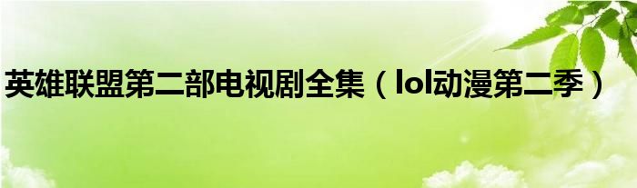 英雄联盟第二部电视剧全集(lol动漫第二季)