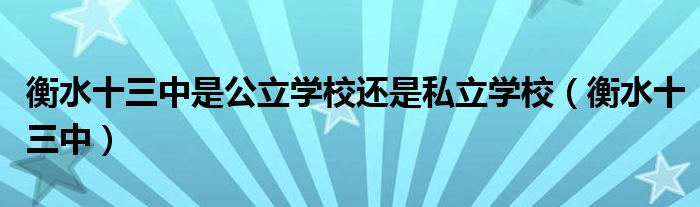 衡水十三中是公立学校还是私立学校(衡水十三中)
