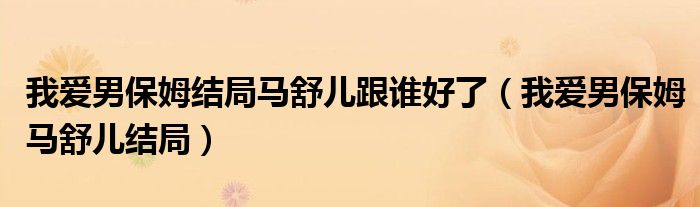 大家好,小晋来为大家解答以下问题,关于我爱男保姆结局马舒儿跟谁好了,我爱男保姆马舒儿结局很多人还不知道,今天让我们一起来看看吧!