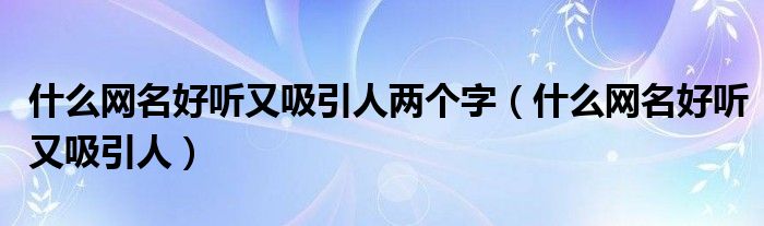 大家好,我是小科,我来为大家解答以上问题。什么网名好听又吸引人两个字,什么网名好听又吸引人很多人还不知道,现在让我们一起来看看吧!