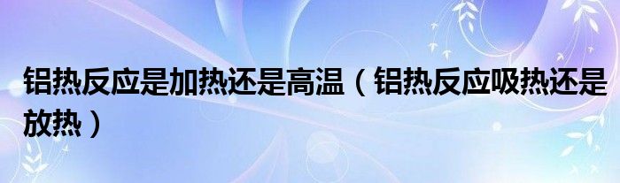 大家好,我是小科,我来为大家解答以上问题。铝热反应是加热还是高温,铝热反应吸热还是放热很多人还不知道,现在让我们一起来看看吧!
