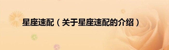 星座速配(关于星座速配的介绍)