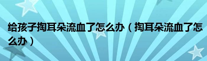 给孩子掏耳朵流血了怎么办(掏耳朵流血了怎么办)