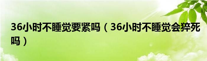 大家好,乐天来为大家解答以下的问题,36小时不睡觉要紧吗,36小时不睡觉会猝死吗很多人还不知道,现在让我们一起来看看吧!