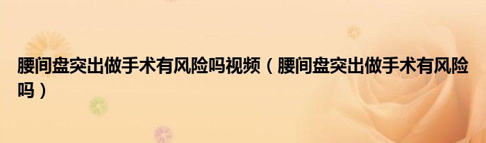 大家好,乐天来为大家解答以下的问题,腰间盘突出做手术有风险吗视频,腰间盘突出做手术有风险吗很多人还不知道,现在让我们一起来看看吧!