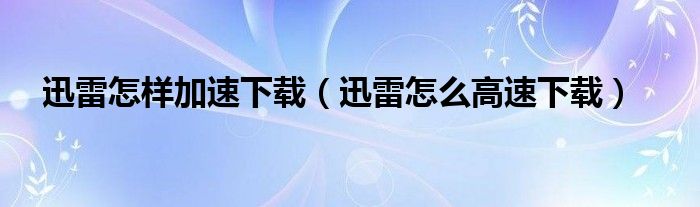 迅雷怎样加速下载(迅雷怎么高速下载)