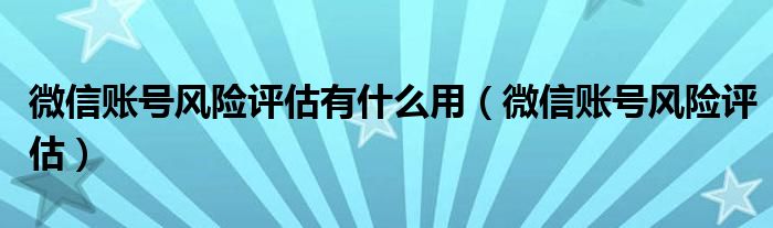 大家好,小晋来为大家解答以下问题,关于微信账号风险评估有什么用,微信账号风险评估很多人还不知道,今天让我们一起来看看吧!